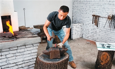 安徽机电职业技术学院副教授蔡晓骝是这一融合模式的践行者。一次偶然的机会让他与铁画“结缘”,“我原本学习油画专业,后来发现铁画和我的艺术背景是相通的。以前用笔,现在用锤子,以前是颜料,现在是金属,都是在表达自己的艺术思维。”蔡晓骝说。